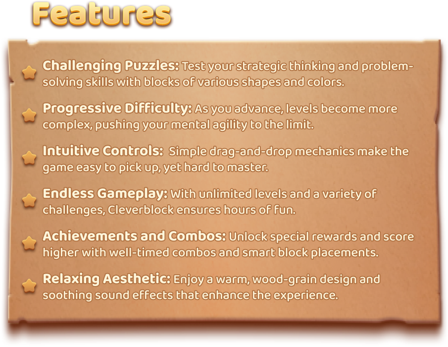 Immersive FeedbackSuperblock enhances the gaming experience with engaging sound effects, background music, and vibrations. These elements provide instant feedback, keeping players connected to the action and amplifying the excitement of the game.